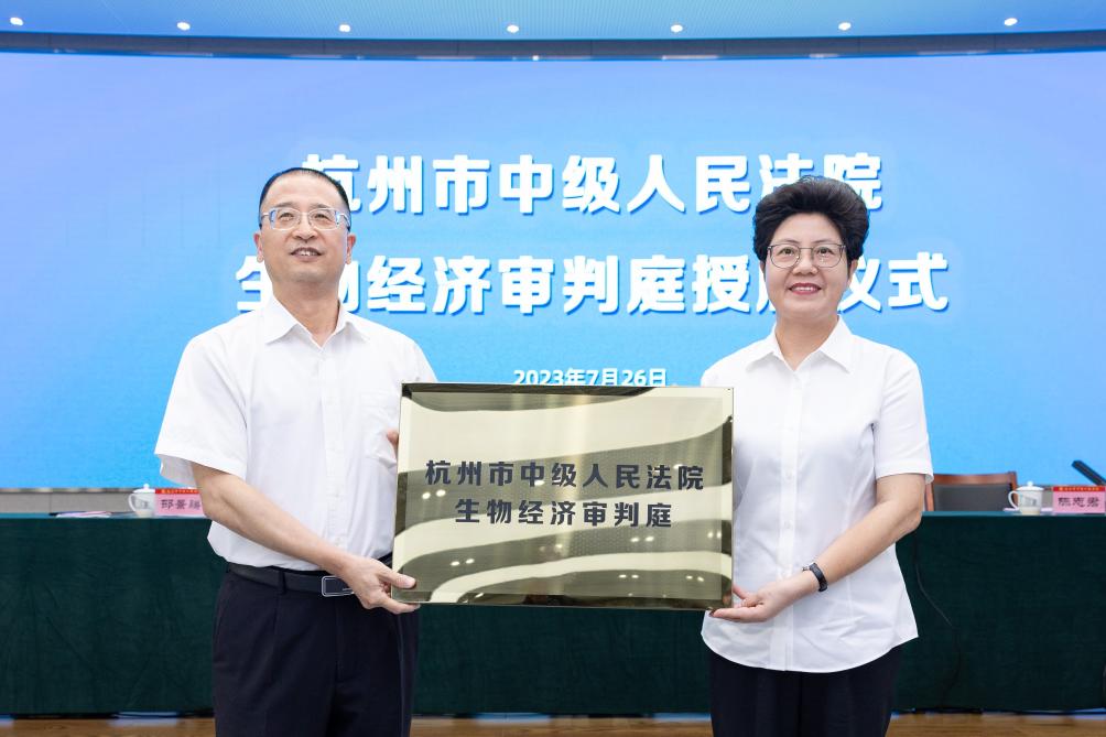 7月26日,杭州市中级人民法院生物经济审判庭授牌仪式现场。陈帅 摄