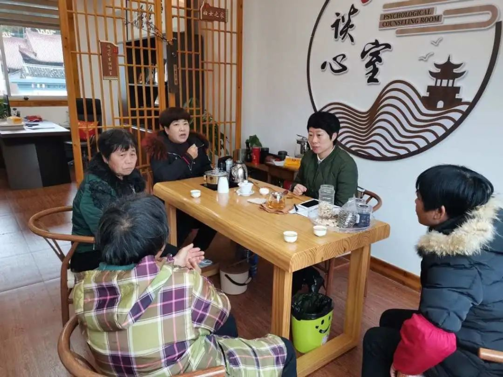 桥墩镇兴庆村党支部书记与山区妇女谈心。新华网发 温州市委统战部供图