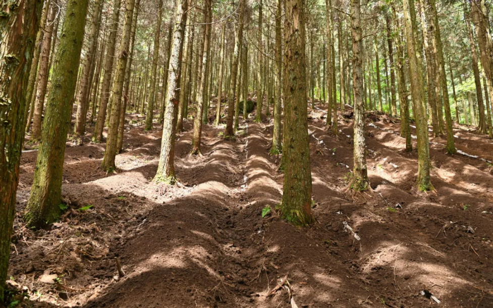 在石垟林场的竹荪基地,成片的树林下都种着竹荪,工人正给红托竹荪覆土。土壤之下,白嫩的菌丝正茁壮生长。