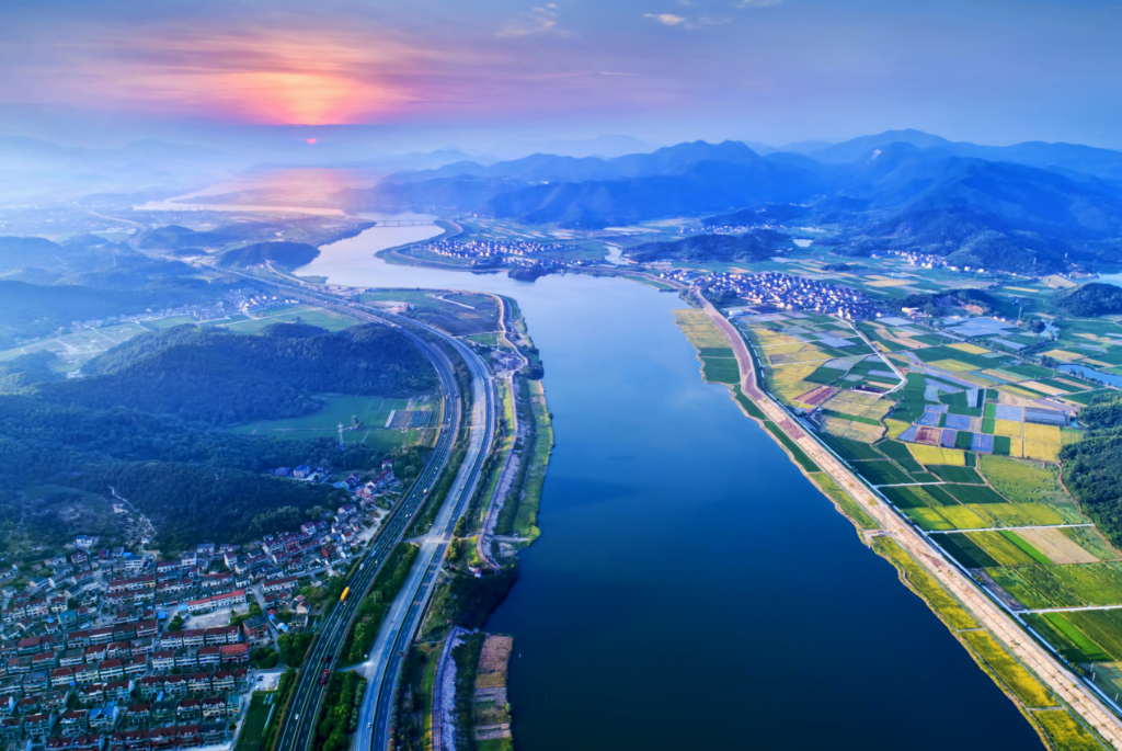 航拍曹娥江全貌。戴信华 摄