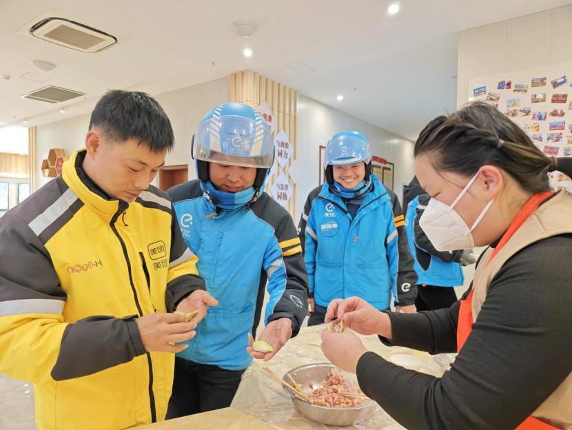 来自河南的外卖骑手张阿辉正好参加了乐清柳市城市驿站内开展的“红骑暖新”活动。他笑称自己是北方人,最喜欢吃饺子。“在外现包现煮吃饺子太难得了,充满了浓浓的家乡味。”