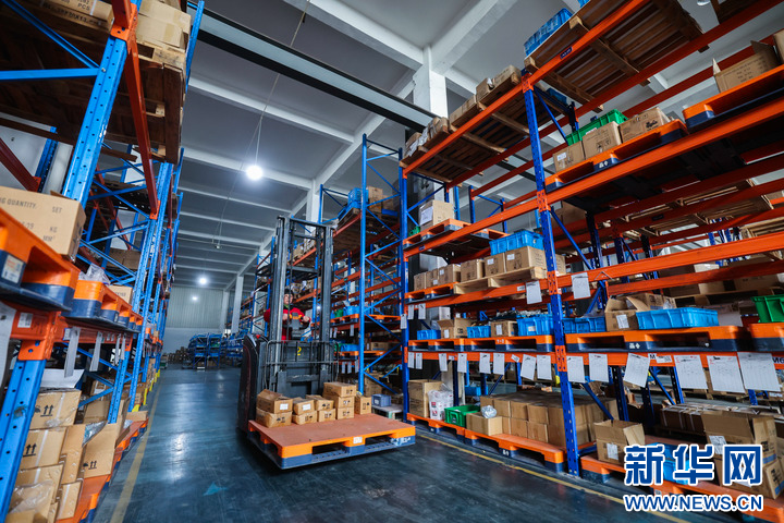 3月11日,在位于慈溪市横河镇的宁波好使特电器有限公司的仓库内,工人操作叉车搬运配件。宁波好使特电器有限公司是一家专业生产锂电园林工具的高新技术企业,生产锂电打草机、割草机、吹吸叶机、修枝剪、链锯等产品,2024年全年产值近4亿元。新华社记者 徐昱 摄