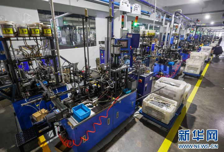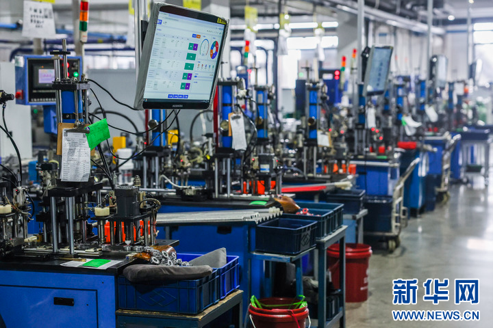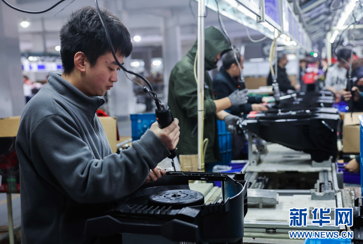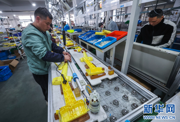 3月11日,在位于慈溪市横河镇的宁波好使特电器有限公司的车间内,工人在流水线上组装一批出口的园林工具。新华社记者 徐昱 摄