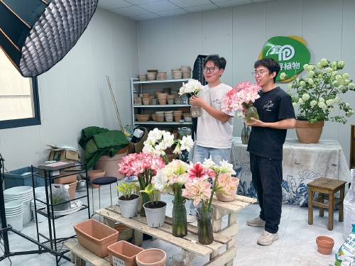 天明村是当地远近闻名的花卉种植村,一直以来,吸引不少投身花卉产业的创业者在这里逐梦,浙江三只懒蚂蚁农业发展有限公司的创始人、“90后”新农人李正平也是其中一人。“近年来,村里的年轻人纷纷外出打工,一批年纪较大的花农种植鲜花的销路有限。我想到将直播带货运用到传统农业,主攻花卉电商直播,还可以帮周边的花农拓宽销路。”李正平表示。