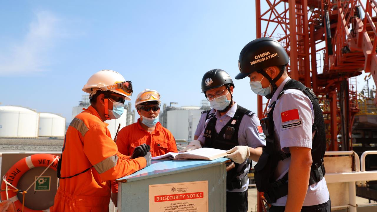 6月26日,巴拿马籍“卡米拉”液化气船在新奥(舟山)LNG接收站码头卸完6.2万余吨液化天然气后,在边检民警的监管下立刻拔锚起航驶向下一港口。如此“丝滑”出境,得益于“助力中国(浙江)自由贸易试验区大宗商品资源配置枢纽建设九项移民出入境便利举措”(以下简称“九项举措”)的实施。