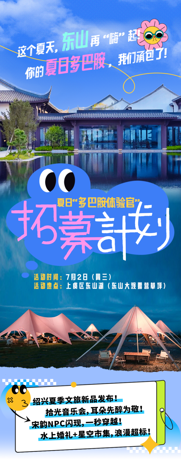 活动由绍兴市文化广电旅游局领衔,集结主流媒体、文旅推荐官、游客粉丝代表,以“线下沉浸+线上共创”模式集中推介绍兴夏季疗愈度假精品,助游客尽享“夏日多巴胺”。游客、粉丝在6月30日前可通过“绍兴文旅发布”微信公众号、“遇见绍兴”小红书等平台参与报名,领取黄酒好礼,参与抽奖,共享文化盛宴,化身“夏日多巴胺体验官”。