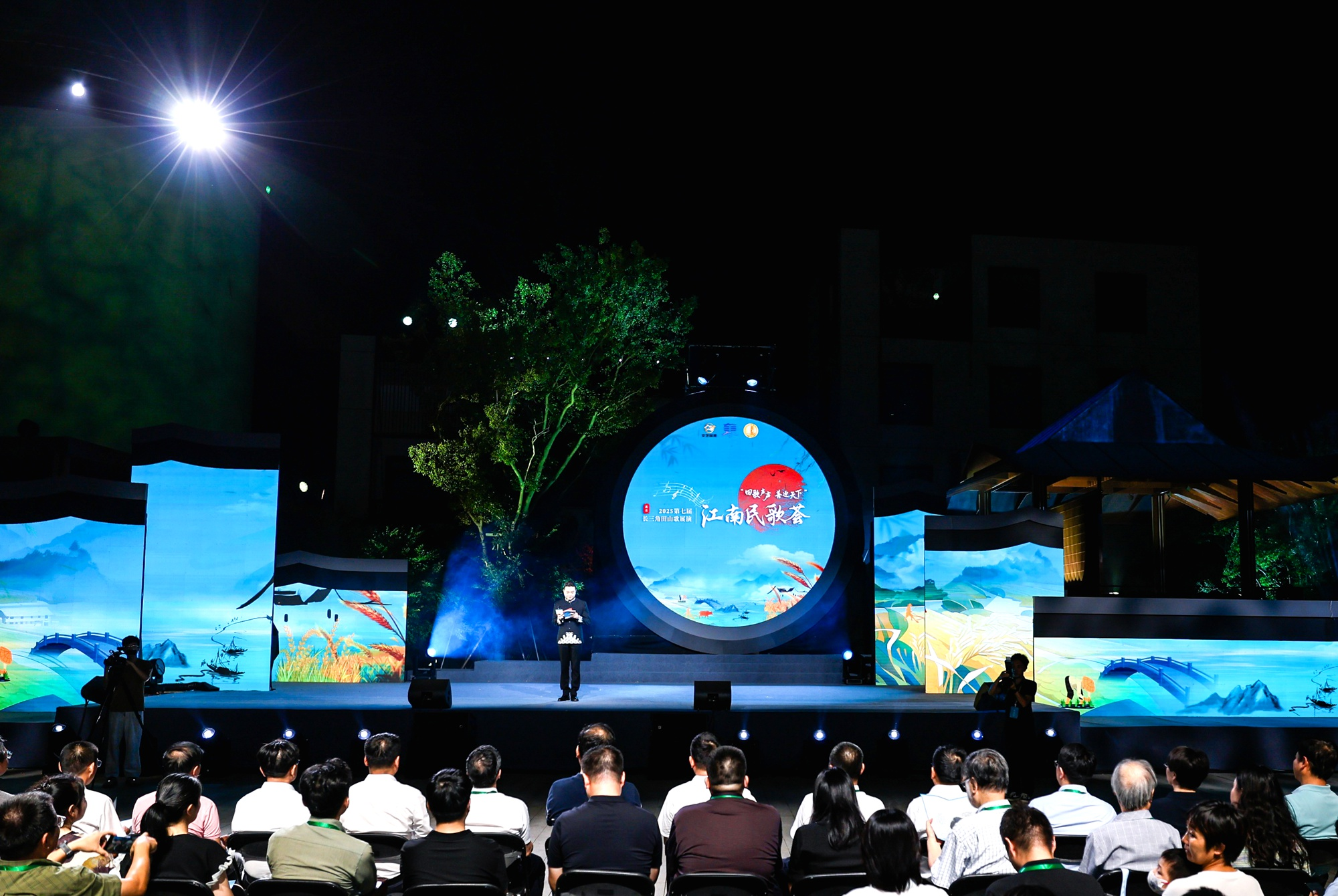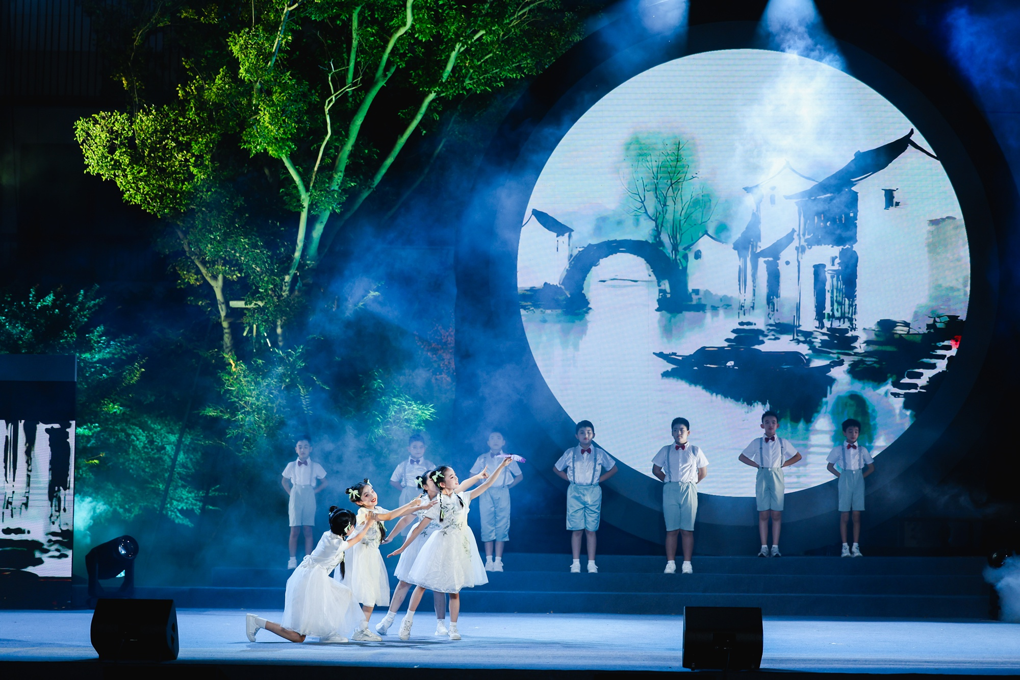 9月19日,夜色中的浙江嘉善姚庄水乡SOHO灯光璀璨,少儿田歌《炊烟牵着歌儿飞》的清脆歌声拉开了江南民歌荟——2025第七届长三角田山歌展演的序幕。