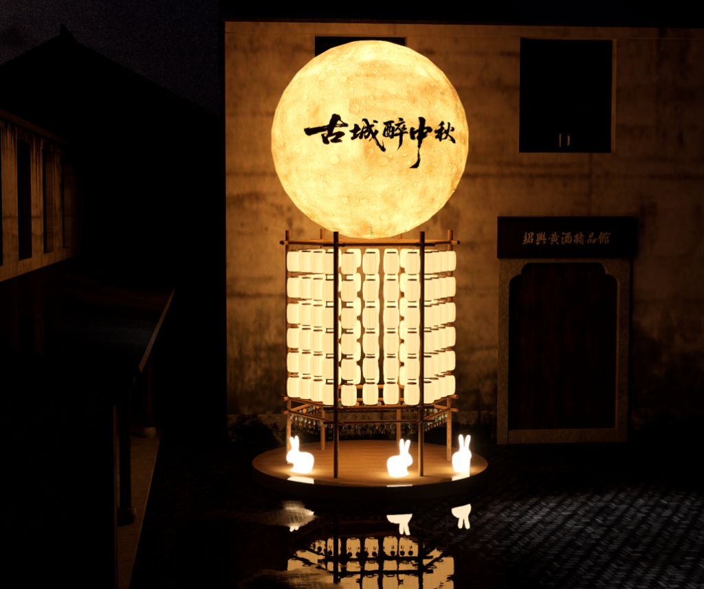 绍兴黄酒小镇内的中秋节装饰。(受访者供图)
