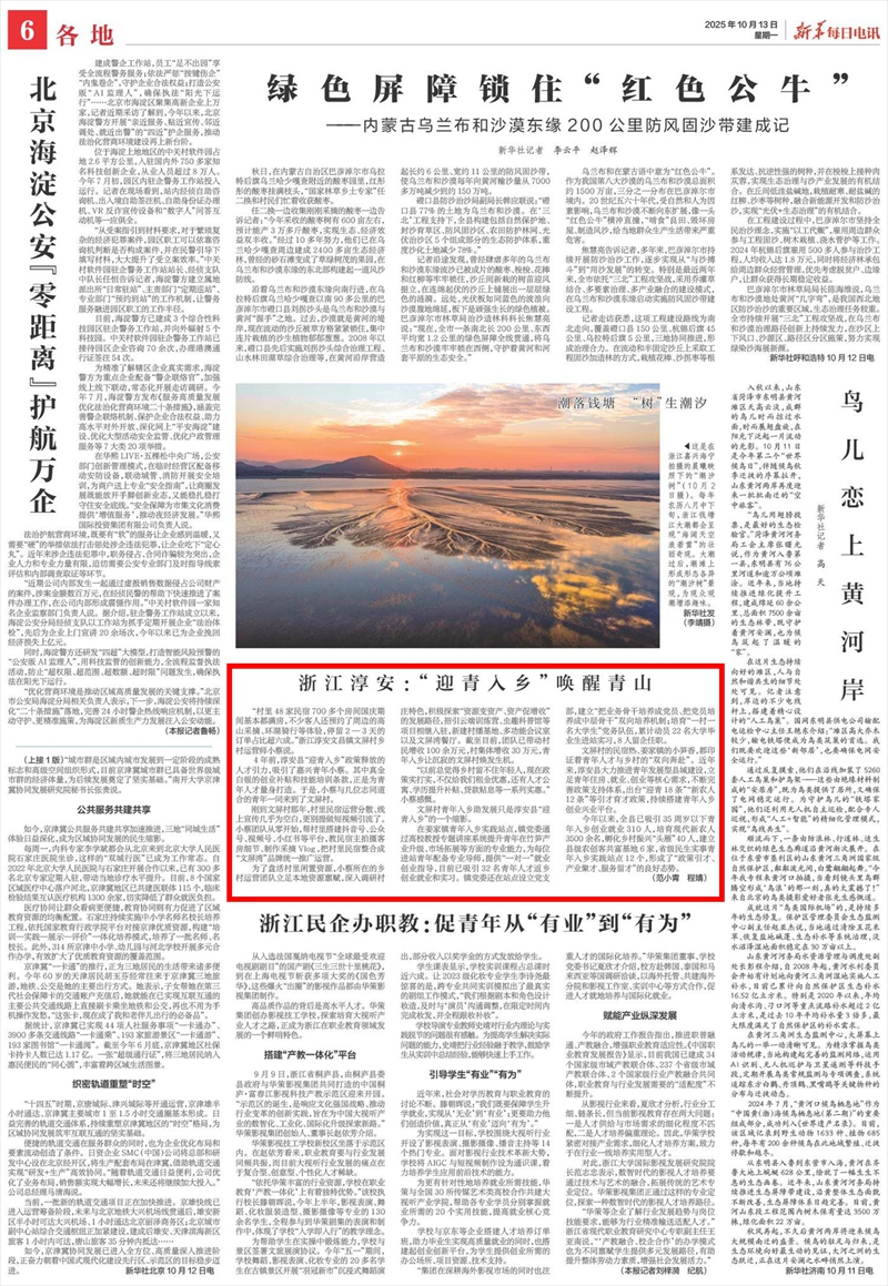 今年以来,全县已吸引35周岁以下青年入乡创业就业310人,培育现代新农人3500余名,孵化乡村振兴“头雁”40人,建立县级农创客共富基地6家,省级民生实事青年入乡实践站点12个,形成了“政策引才、产业聚才、服务留才”的良好态势。(范小青 程婧)
