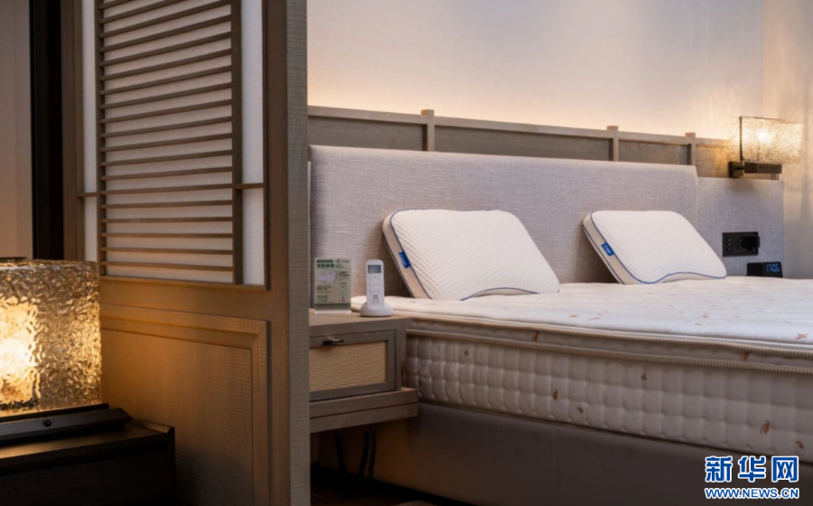 乌镇的空气悬浮床垫会通过AI精准捕捉你的身高体重数据,让睡眠也能很“智慧”。新华网发