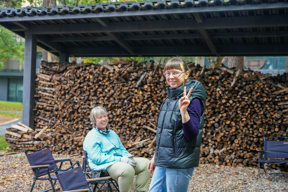 望瓯·陶溪川艺术中心驻场艺术家Marina Erkovich(俄罗斯)和Olga Morozova(俄罗斯)开展国际柴烧营烧制工作。吴嘉婧/摄