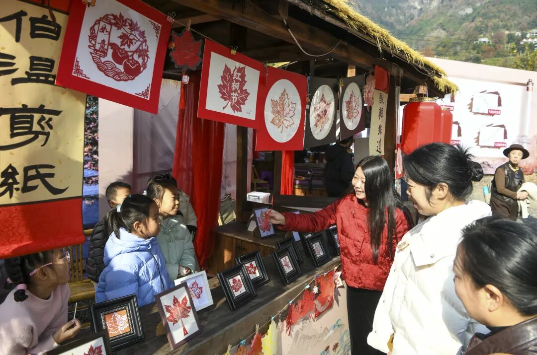 古道盛景聚人气,山脚市集添活力。岩庵岭红枫古道山脚下,特色市集热闹启市,文创手作、地方美食、民俗展演等摊位依次排开,往来游客络绎不绝,烟火气息扑面而来。NPC互动、趣味打卡、休闲小游戏等丰富活动同步开展,全方位丰富游客体验,让大家玩得尽兴、乐在其中。