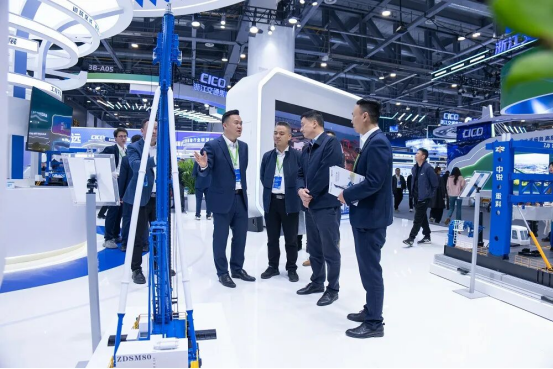 展区内,一系列智能化施工设备共同构成了应对复杂工况的“装备矩阵”。ZM系列智能植桩机为城市建设中的深层桩基施工提供了高效环保的解决方案;ZG系列液压抓斗通过系统优化,施工效率显著提升;专为软土地基加固设计的双轴搅拌钻机,则服务于海内外多项重大工程。