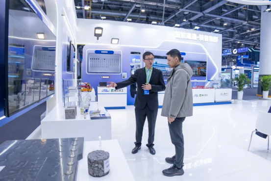 在绿色新材料展台,几块看似普通的样板,蕴含着针对特定场景的研发智慧。“工程材料关键在于‘对症下药’。”现场解说员手持一块光滑如镜的板解释道,“这是自清洁氟碳面漆,应用于百米高桥塔,可利用雨水自洁,彻底解决高空清洁难题。”另一块厚重的黑色材料,是专为潮差区施工研发的湿固化耐海水环氧涂料。“它能在海水中继续固化,有效解决了潮差区施工周期短的难题,形成了长效的涂装寿命保护体系。”