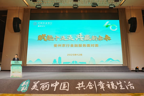 近日,中国农业银行衢州分行举办“赋能‘十五五’ 共赢新未来”衢州农行金融服务面对面活动。会上,该行发布“十五五”金融赋能衢州高质量跨越式发展服务方案。该方案是农业银行衢州分行结合衢州未来5年发展目标和重点工作部署专项制定,共5大板块15个方面,明确了该行未来五年支持当地经济发展的核心路径与举措。