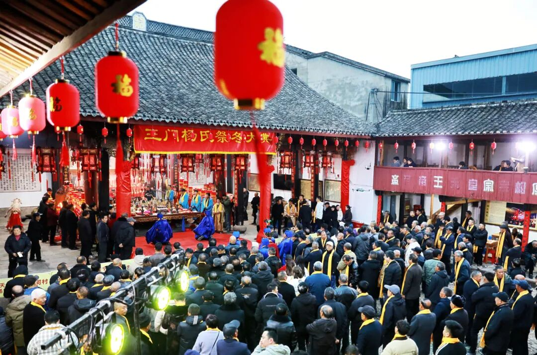 在亭旁杨家村家庙内,杨氏子孙行净手、上香、酹酒、读祝等古礼,并依序三跪九叩。来自各地的宗亲按房支列队祭祖,场面肃穆有序。主祭人杨成来二十余年来一直担任喝礼,他表示:“‘祭冬’不仅是祭奠祖先,更是对自然规律的敬畏、对农耕文明的传承。每一道程序都蕴藏深意,教导后人不忘根本、常怀感恩。”