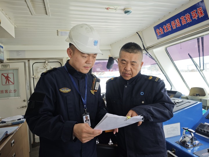 图为海事执法人员对客渡船开展适航检查。(浙江海事局供图)
