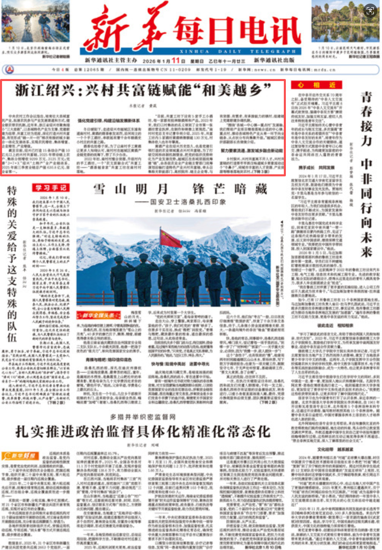 截至目前,绍兴已打造15条综合产值10亿元以上的兴村共富链,2025年带动链上农户、集体分别增收9299万元、3125万元;完善“3+7+X”绍兴“土特产”全产业链体系,2025年前三季度全链总产值630.8亿元、居全省第一。
