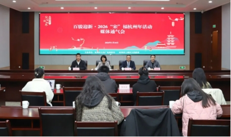 1月16日,杭州市文化广电旅游局召开百骏迎新·2026“宋”福杭州年媒体通气会。杭州市文化广电旅游局、杭州市上城区文广旅体局、杭州市文化和旅游推广中心相关负责人介绍了“宋”福杭州年活动的整体情况。