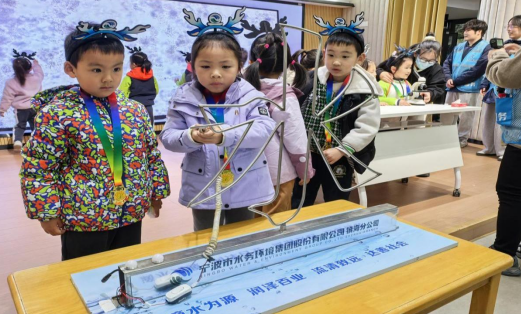 实践体验环节是本次活动的亮点,镇海水务分公司联合岚山净化水厂讲解队、宁波市给排水工程设计研究院有限公司,结合幼儿动手能力,精心设计了污水净化DIY、节水拼图大作战、显微镜观察、水管穿梭游戏四大互动项目,20名大学生志愿者分组协助小朋友完成各项体验。在污水净化DIY实验中,小朋友们在老师、水务志愿者的指导下,亲手操作,见证浑浊污水经絮凝、沉淀、过滤变为清水的神奇过程,直观感受污水治理的不易;显微镜观察环节,小朋友们细致观察污水中的轮虫、钟虫等微生物,探秘微观水世界;节水拼图、水管穿梭游戏则以趣味竞技的形式,让小朋友们在玩乐中加深对节水流程、用水安全的认知,进一步强化节水理念。