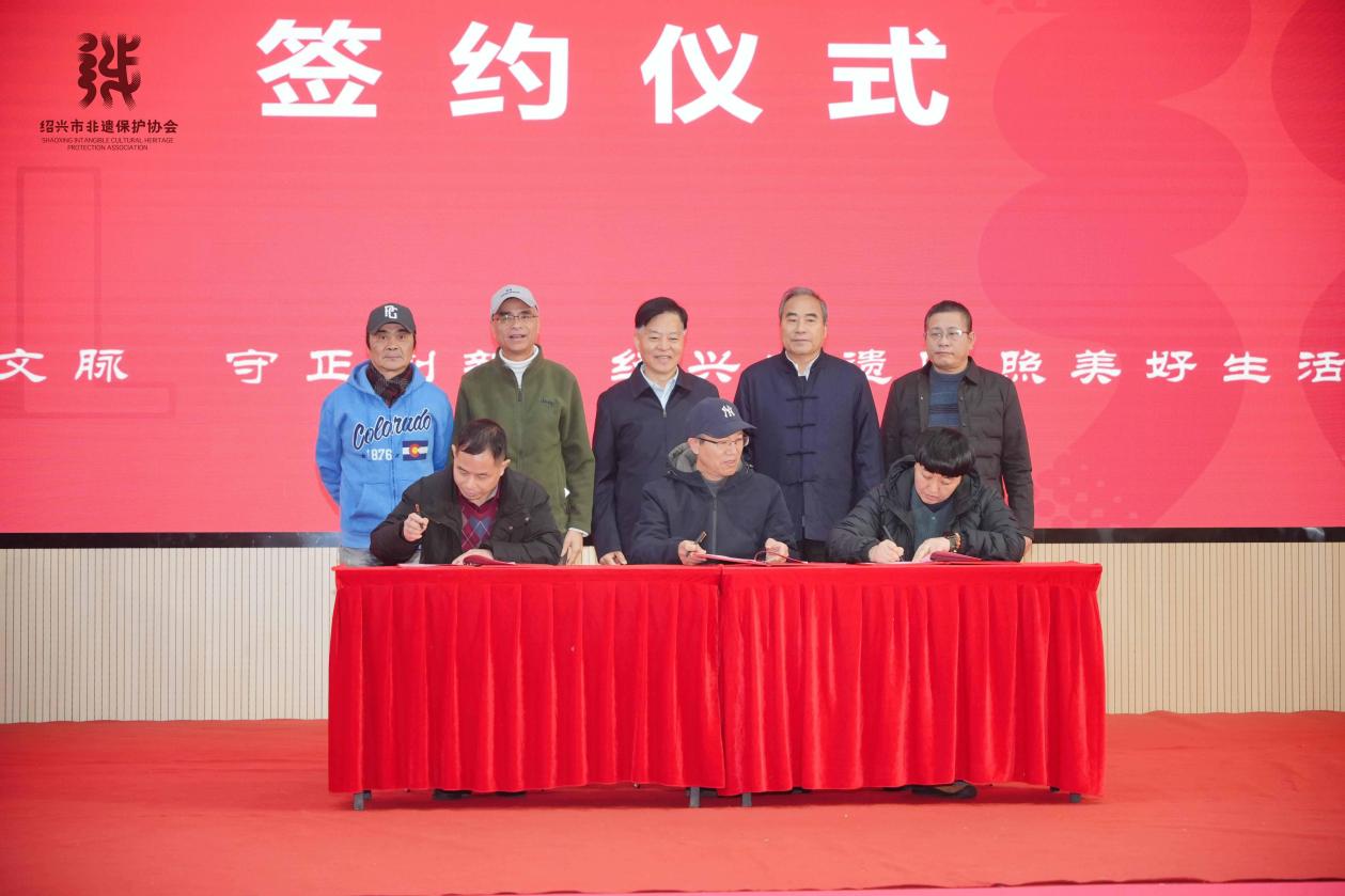 此外,为落实“非遗出海”突破目标,大会举行了绍兴市非遗保护协会与浙江传媒学院文学院、浙江越秀外国语学院中文学院共建“非遗国际传播基地(泰国)”签约仪式。三方将携手挖掘绍兴非遗国际表达内核,拓宽非遗国际传播渠道,让绍兴非遗故事走向世界。会间,非遗短剧先导片与绍兴非遗形象代言“小师爷”动画片片花相继播放,以年轻化、趣味化表达展现非遗当代活力,呼应“激活非遗、连接生活”的创会宗旨。绍兴银行与绍兴文理学院专家分别就金融支持非遗、AI技术应用作了专题分享。大会同步启动了“2026绍兴非遗‘三新’(新场景、新消费、新教育)计划”。