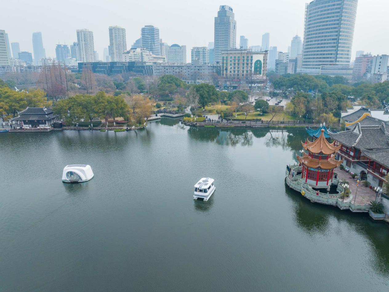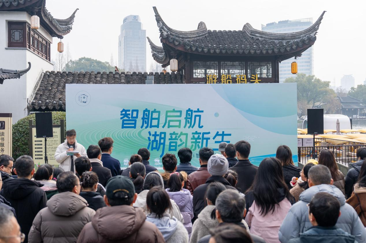 据了解,这三艘智能游船分别名为“罗小舟·智”“罗小舟·悦”以及“罗小舟·墨”。与传统游船不同,“罗小舟”系列游船采用“电能+太阳能”环保动力模式,实现零排放、低噪音运行。游船以“水上超级空间”为设计理念,将智能交互与舒适体验深度融合,让市民游客在泛舟湖面、品读千年文脉的同时,沉浸式感受科技与自然的和谐共生。