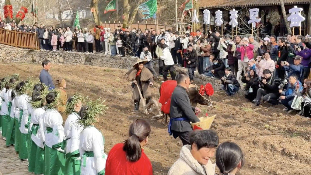 仪式后,司农田举行了鞭春牛活动。随着《鞭春喝彩歌》响起,犁头破土,种子入地,将仪式推向高潮。