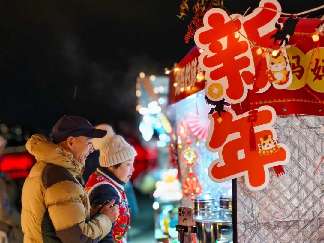 夜幕低垂,华灯初上,“和美柯桥·马踏新程”亮灯仪式点亮湖畔夜空。市民游客们穿梭于福路与灯影间,拍照、分享,将这份“柯桥年味”传递至远方。