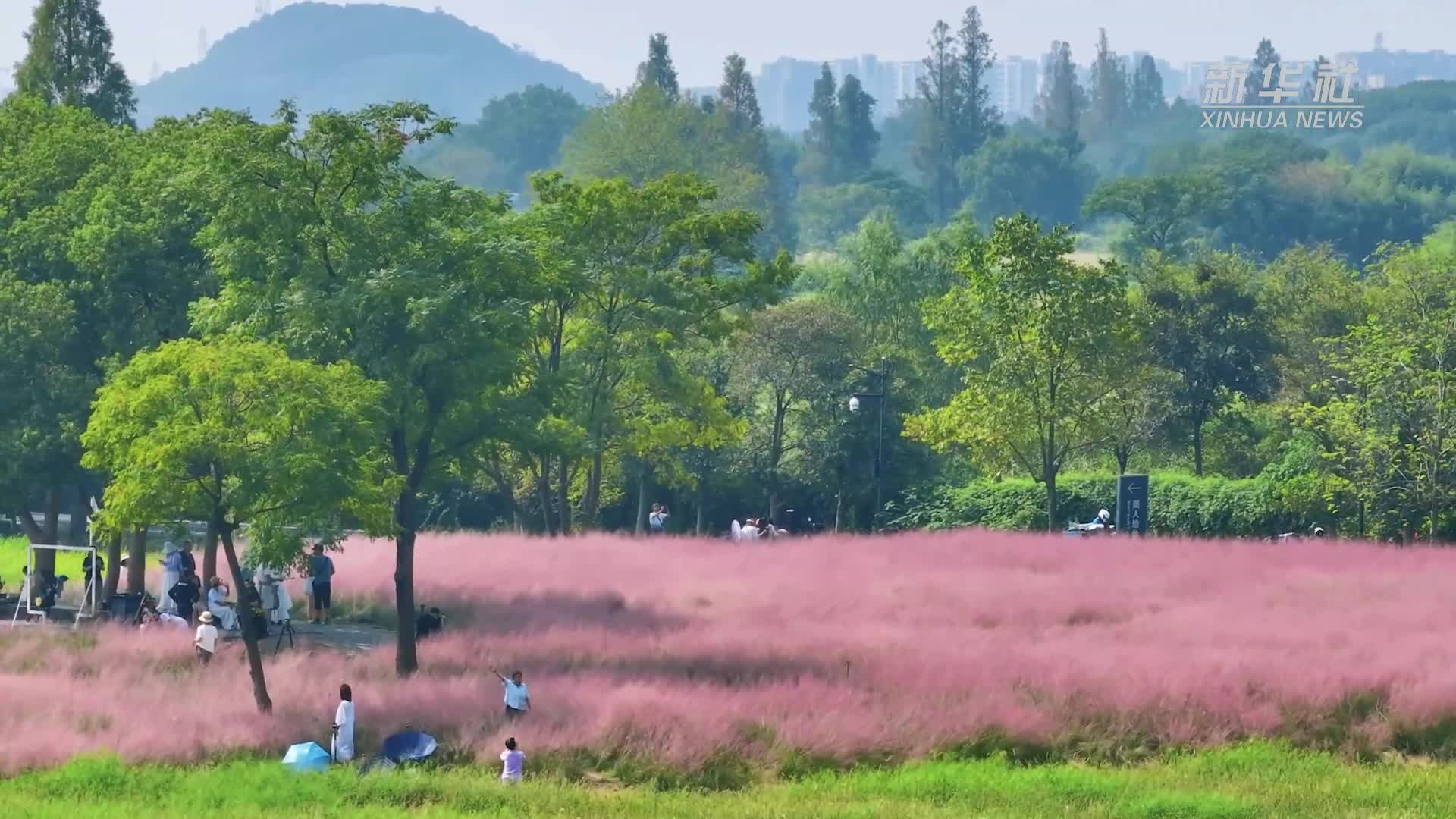 良渚古城遗址公园秋色“上新” 粉色花海引客来