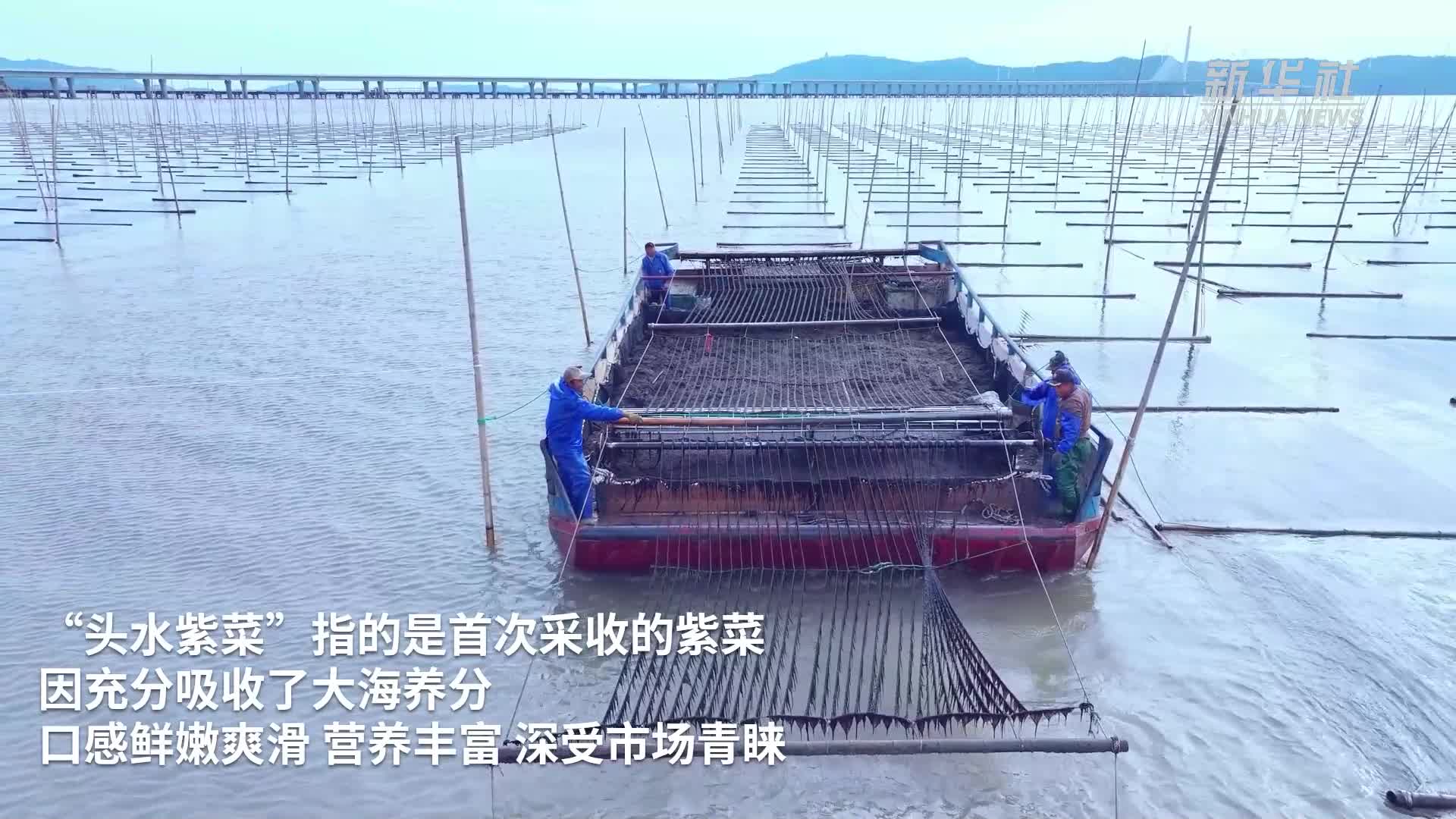 浙江洞头:“头水紫菜”采收忙
