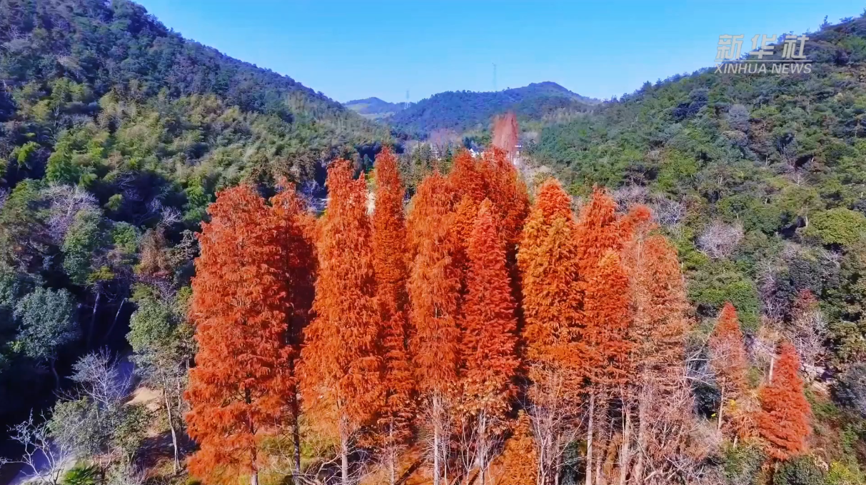 湖州安吉:金松覆岭 霜染层林