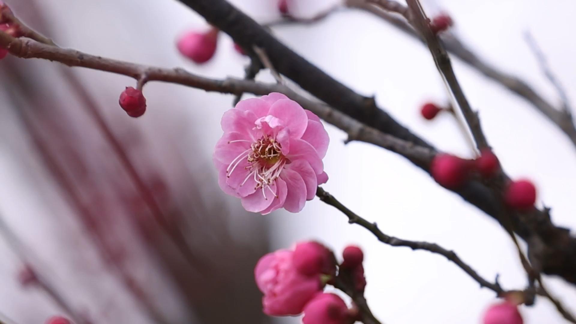 杭州良渚古城迎早梅绽放 吸引游客寻芳赏景