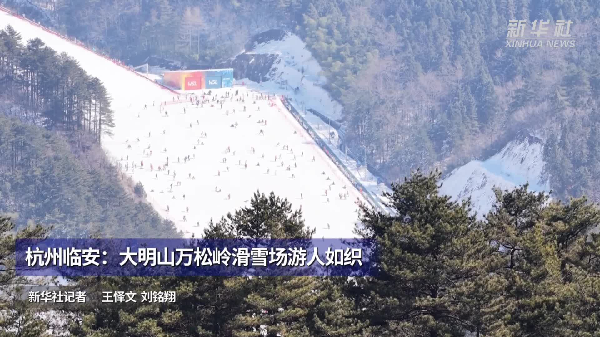 杭州临安:大明山万松岭滑雪场游人如织