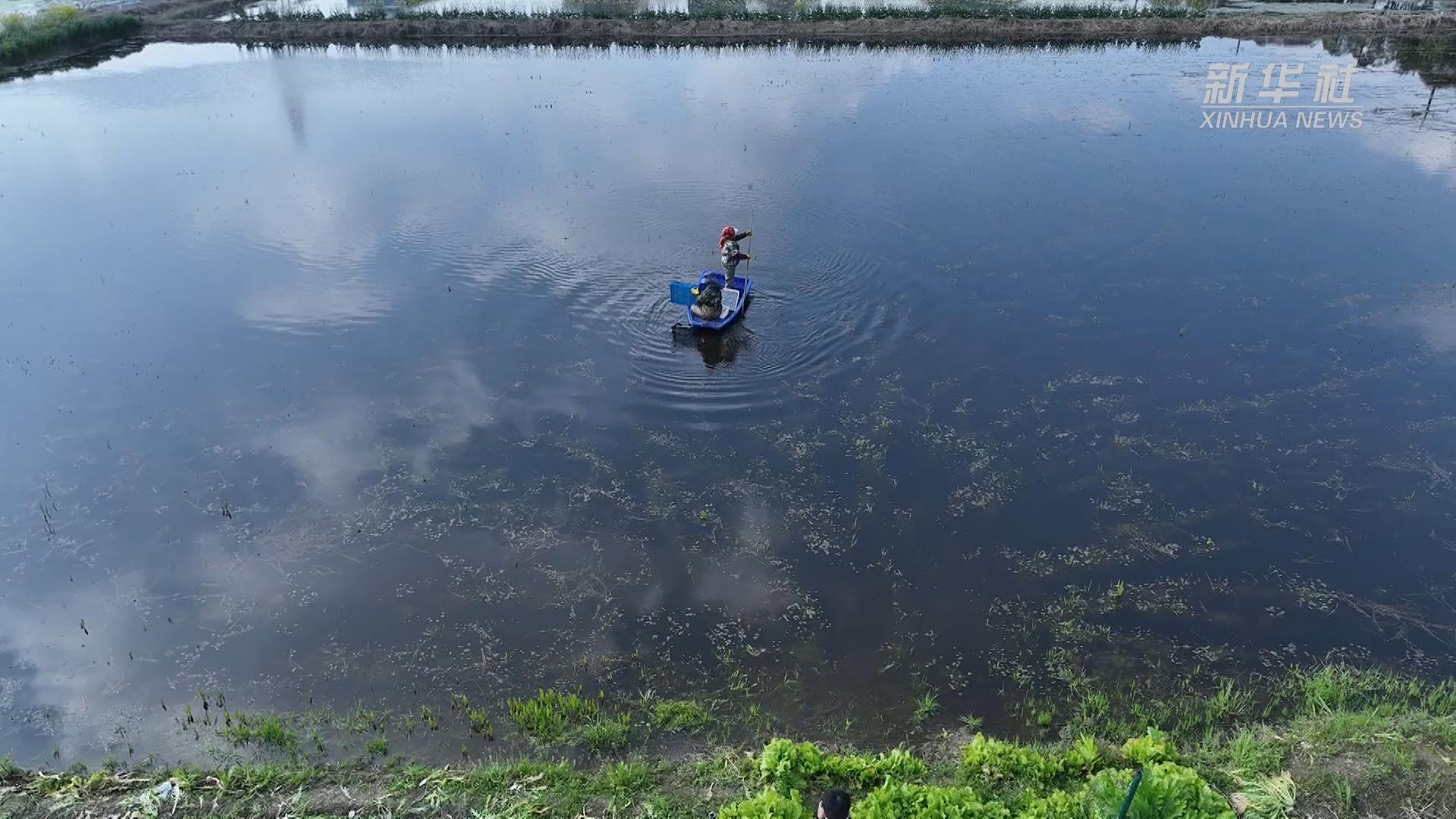 浙江温岭:冬季茭白迎丰收 农户田头采收忙