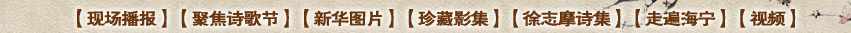 [新华网现场播报员](张炜芬)各位领导、朋友们: 晚上好! 由中国诗歌学会、浙江省作家协会、海宁市人民政府联合主办的首届中国海宁徐志摩诗歌节将要隆重开幕了。 |