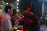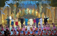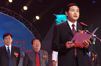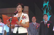[新华网播报员现场播报]:(一司仪捧牌上。授牌毕) (领导入座) 下面请大家观看文艺演出。 |