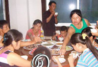 被转移的民众在用餐